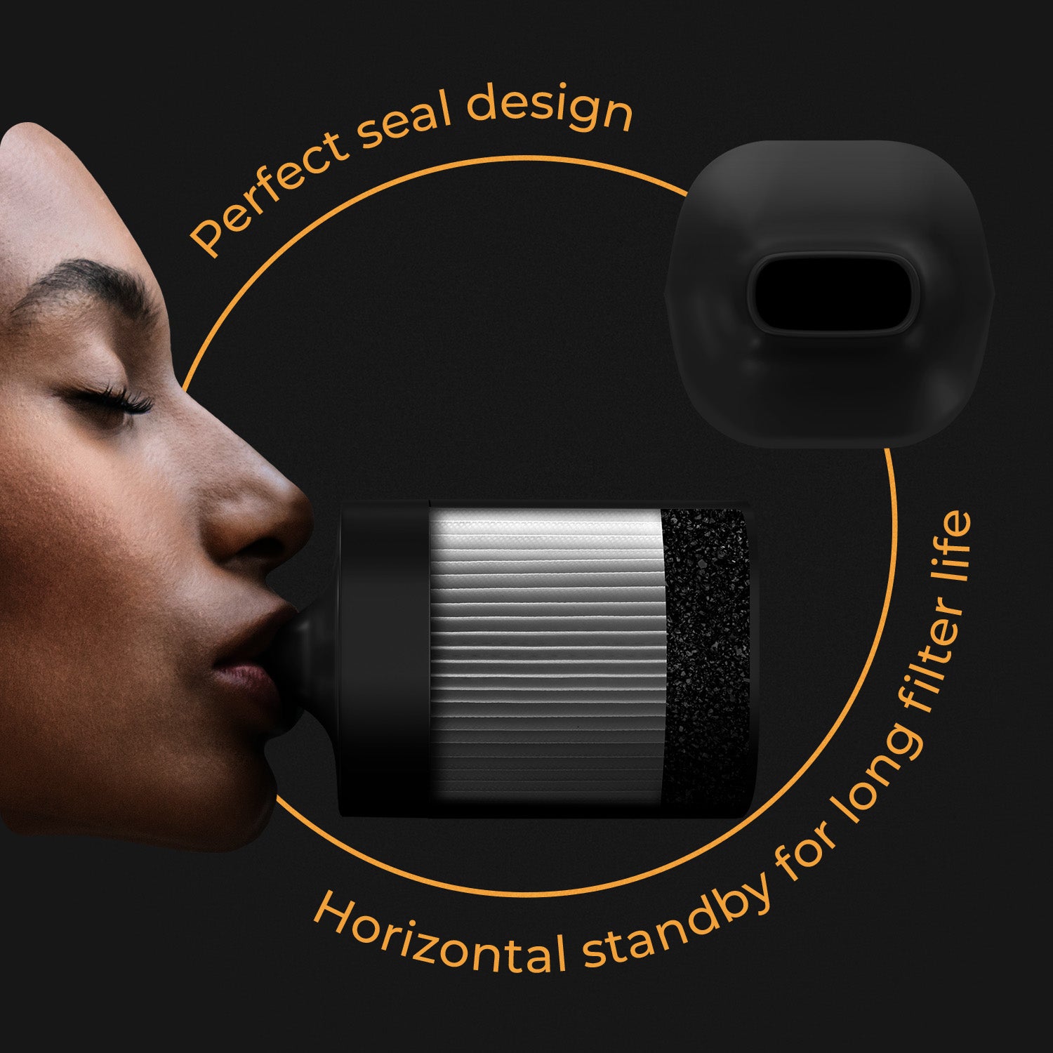 How? Unique ergonomic mouthpiece design allows for a uniquely tight seal. The shape of vonSploof employs horizontal storage to offer the effective HEPA filter maximum longevity.